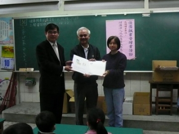 「財團法人沈水德文教基金會」為推廣學校閱讀活動,贈送學校圖書乙批,提供小朋友更多閱讀機會,3月10日沈水德文教基金會,薛幸瑗執行秘書特地撥空到校贈送圖書,並由南榮技術學院企管系曾春淑老師及技術學院的大哥哥、大姊姊展開為期8週的閱讀活動,帶領小朋友閱讀繪本、討論心得,小朋友都很踴躍參與,用心討論並寫下心得,收穫豐富。